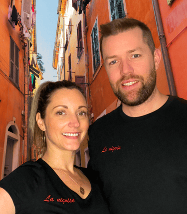 Virginie et Grégory, un couple passionné et amoureux de Nice, se sont rencontrés au cours de leurs voyages. Virginie, une niçoise pure souche, et Grégory, charmé par la beauté de la ville, ont décidé de s'installer ensemble sur la Côte d'Azur. Après une décennie de vie et d'amour à Nice, l'idée germa en eux de créer une marque de vêtements, reflétant leur attachement pour cette ville ensoleillée. Ainsi naquit leur projet, conçu pour captiver les amoureux de Nice et les fiers chauvins, unissant leur passion pour cette terre d'exception dans chaque couture.